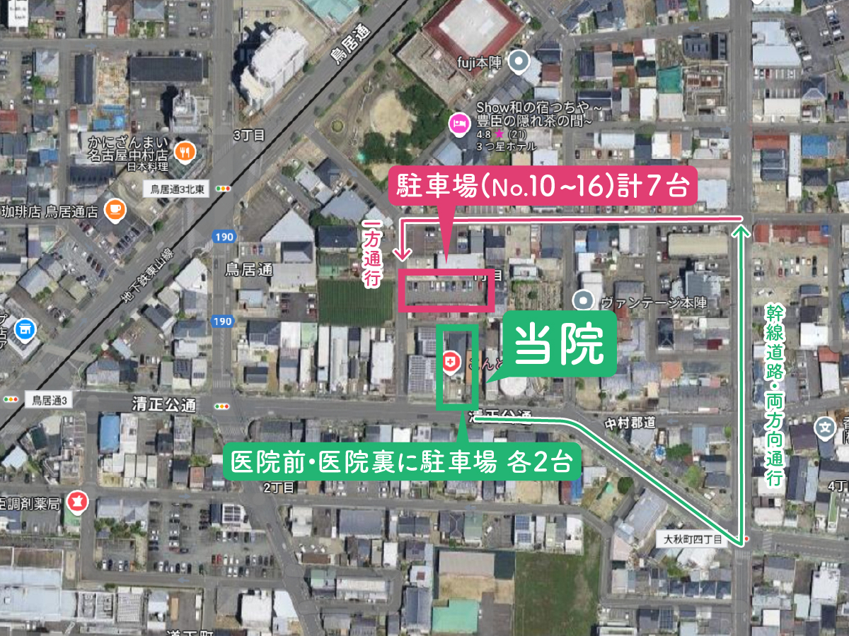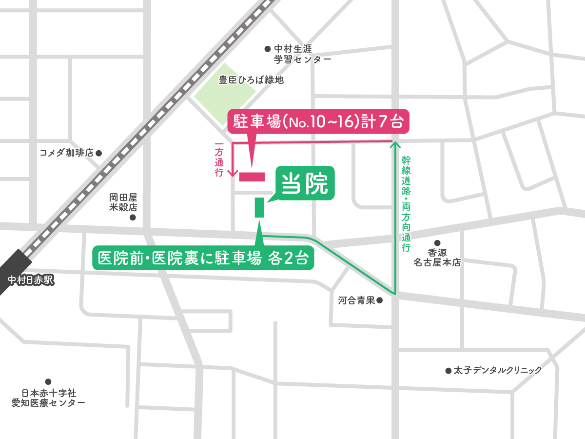 医院前・医院裏に各2台駐車場完備